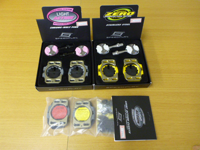 SPEEDPLAYのペダル取扱始めました。 SPEEDPLAYの良さって、先ずはペダルのダイレクト感。そして調整のしやすさ 両面踏めるなど、数多くの利点があります。逆に弱点はというと、クリートが減りやすい。交換クリートが高価などがありますが、最近のツールなどでの使用率の高さをみると選手からも支持を得ている事がわかります。また、オプションも豊富で、軸長も様々に選べます。SPDペダルやLookのペダルしか使った事が無い方、一度だまされたと思ってSPEEDPLAYどうですか?