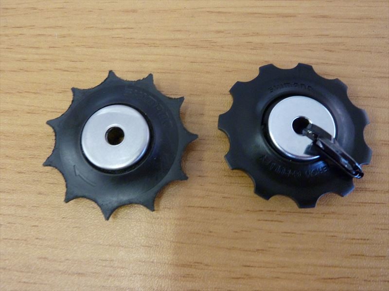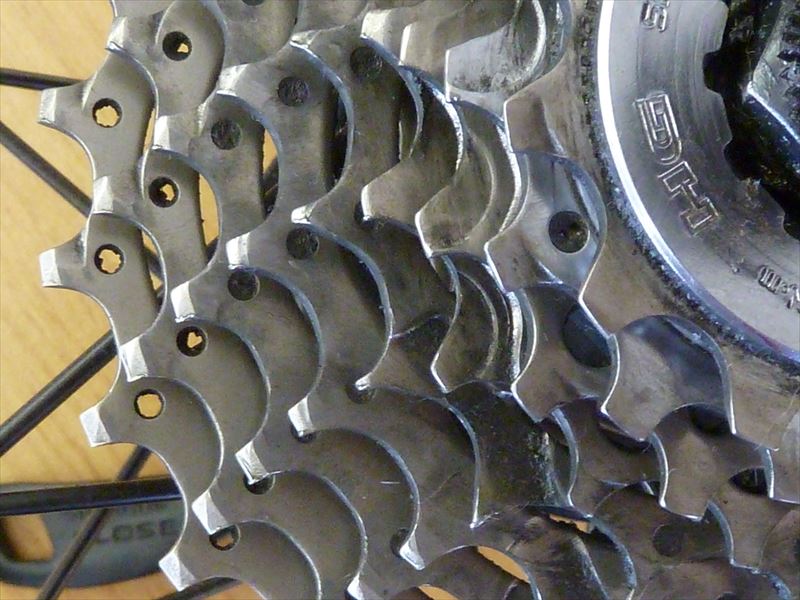 リヤディレイラーのスプロケットです。左の写真の右側が新品の写真です。もーとにかく何にでも突き刺さりそうです。