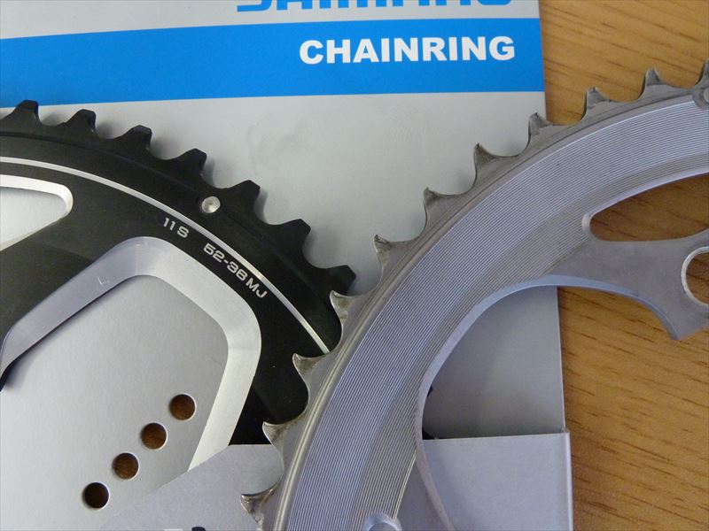 チェーンリングです。黒い方は新品です。ディスクブレーキのローターが怖いって話がありますが、こちらのチェーンリングの方が絶対怖いです。
