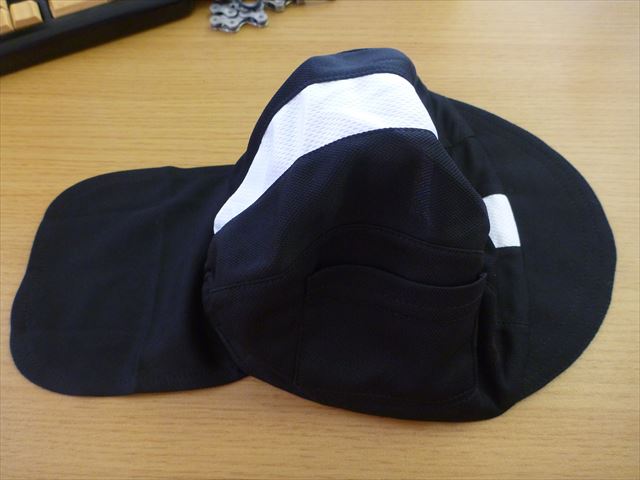 実は後ろの日よけ部がマジックテープで脱着可能。それを収納するポケットもついています。
