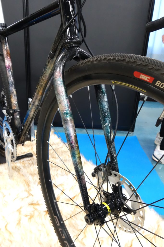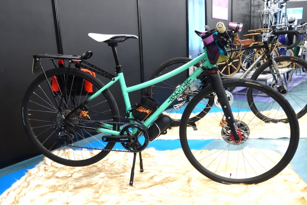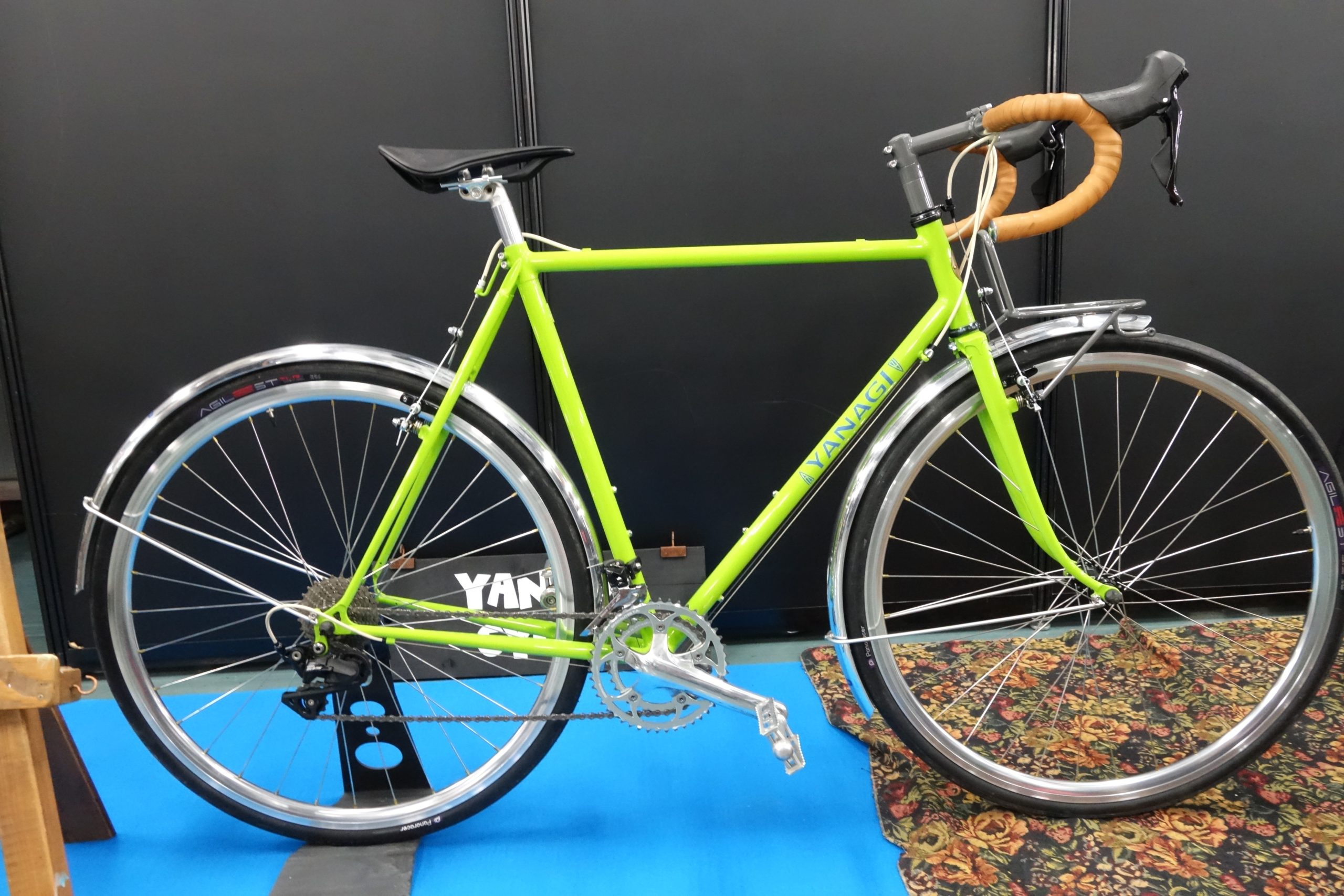 続いて、‘’柳サイクル‘’さん 当店では昨年からフレームを作ってもらってます。今回の展示は、Quietの新種 カンチブレーキで泥除け装着可 キャリアも付けれます。ある意味昔のランドナーを現代風にモディファイしたという感じでしょうか? まーツーリングの本質は昔も今も変わっていないと思うので、突き詰めていくとこうなってしまうところはあると思います。