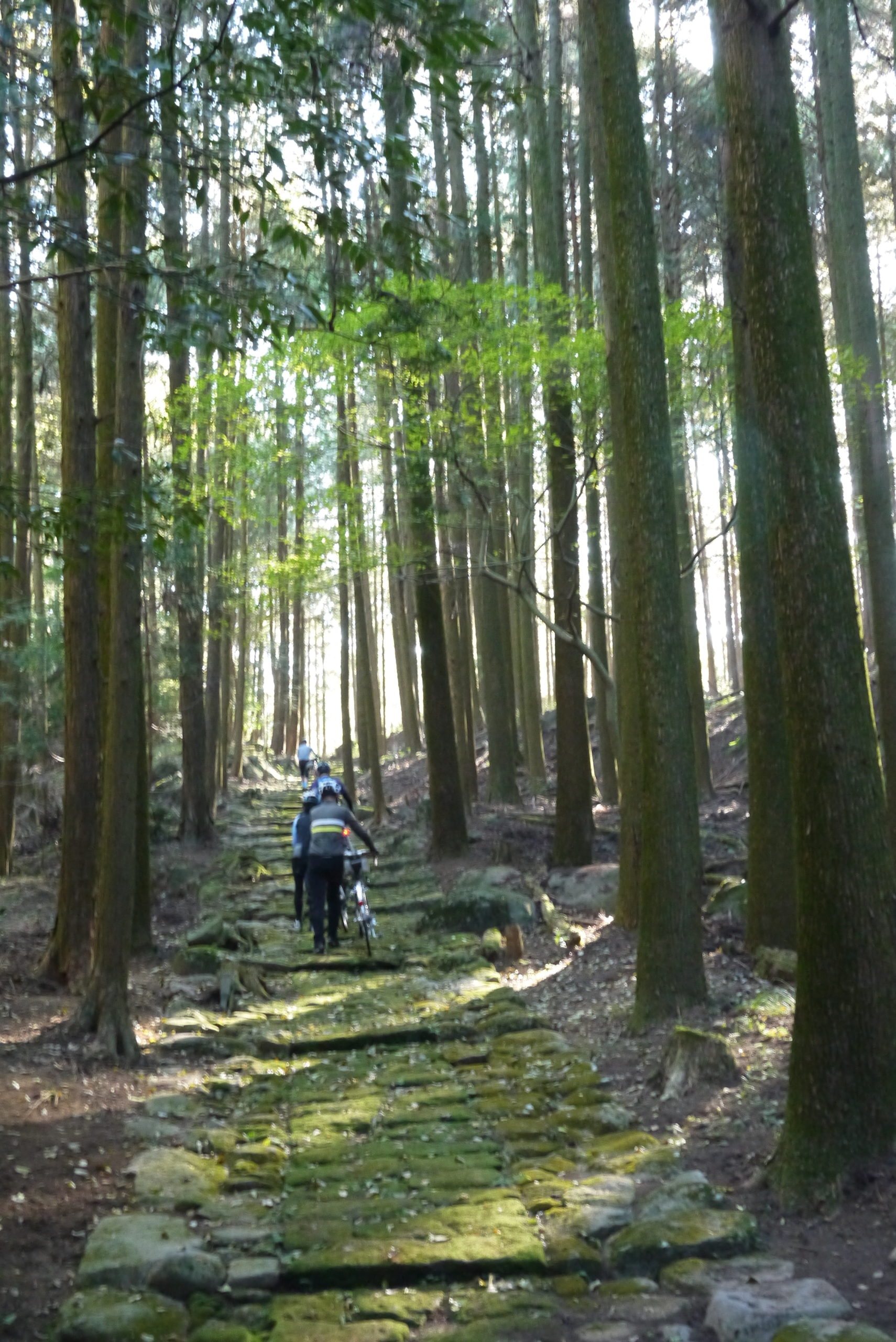 ここはあえて昔からの石畳の道を押して上ります。もちろん車道も有りますが、山口県からわざわざ石工を呼んで作られた石畳の道なのです。