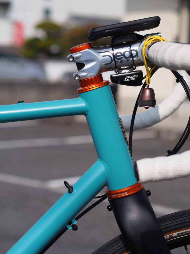 先程書きましたけど、ヘッド小物とシートクランプはWolftoothの物に変えています。この手の部品の中では高くないとは言えませんが、他社に比べたらお手頃で、個性を主張できます。特にヘッド小物はシールとかも良くできていて厳しい条件で使われる方にはお勧めのモディファイですね。