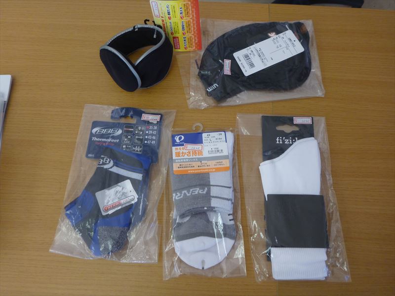 冬用の帽子や耳あてもあります。靴下は薄くて暖かい奴です。